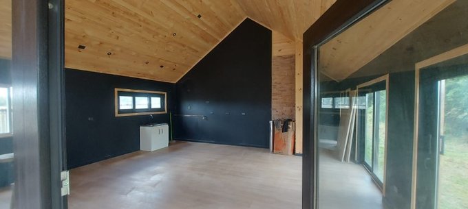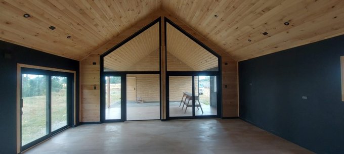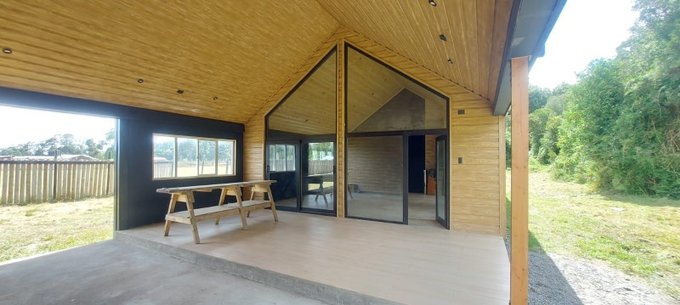 Casa moderna en parcela de agrado - diseño contemporáneo tipo galpón, con terminaciones de alto estándar y amplios espacios interiores. Ubicada en sector Colonia San Martín, Frutillar, con excelente conectividad y entorno natural privilegiado.