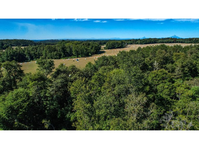 Parcelas con orilla de camino, bosque, parque en conservación y mirador a los volcanes.