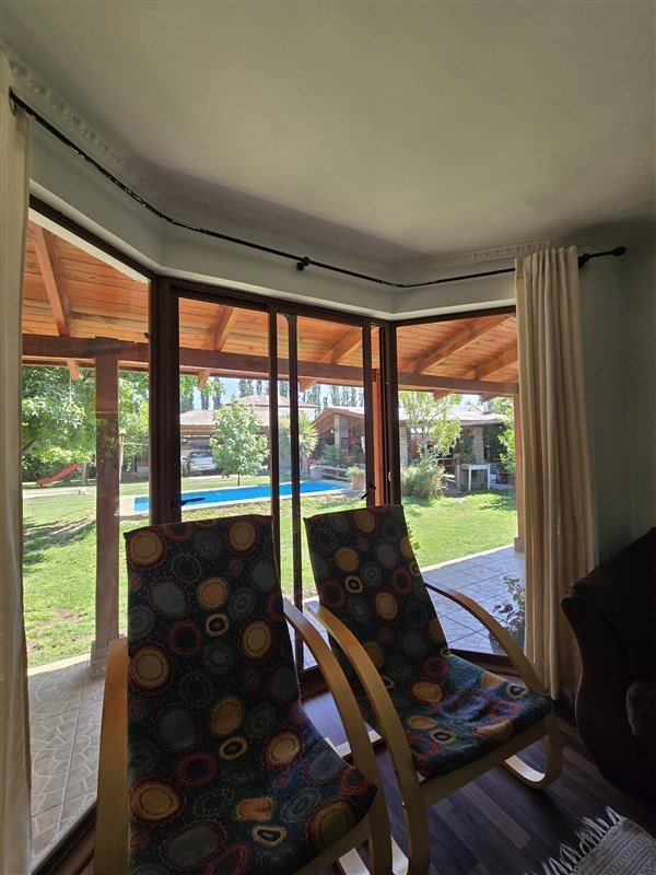 Un quincho con horno de barro y piscina de 6x3 metros.