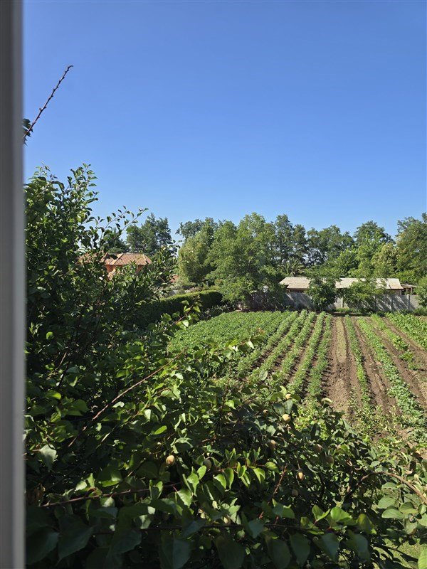 Amplio jardín con una notable variedad de árboles frutales en producción.