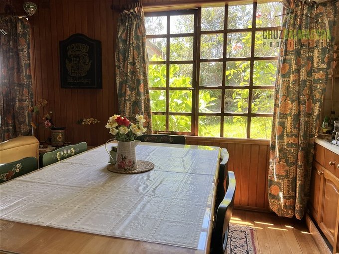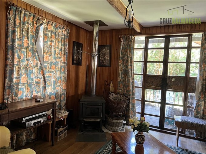 El predio cuenta con una casa principal de aproximadamente 200 m, construida íntegramente en maderas nativas de alto valor, destacando el uso de alerce en estructura y terminaciones, pisos de hulmo, revestimientos de canelo, además de mañío, avellano y otras especies nobles, logrando una arquitectura cálida, rústica y de gran carácter. La vivienda ofrece amplios espacios interiores, cocina integrada, múltiples dormitorios, terrazas, patio de servicios y un gran altillo habilitado, permitiendo una cómoda capacidad de alojamiento.