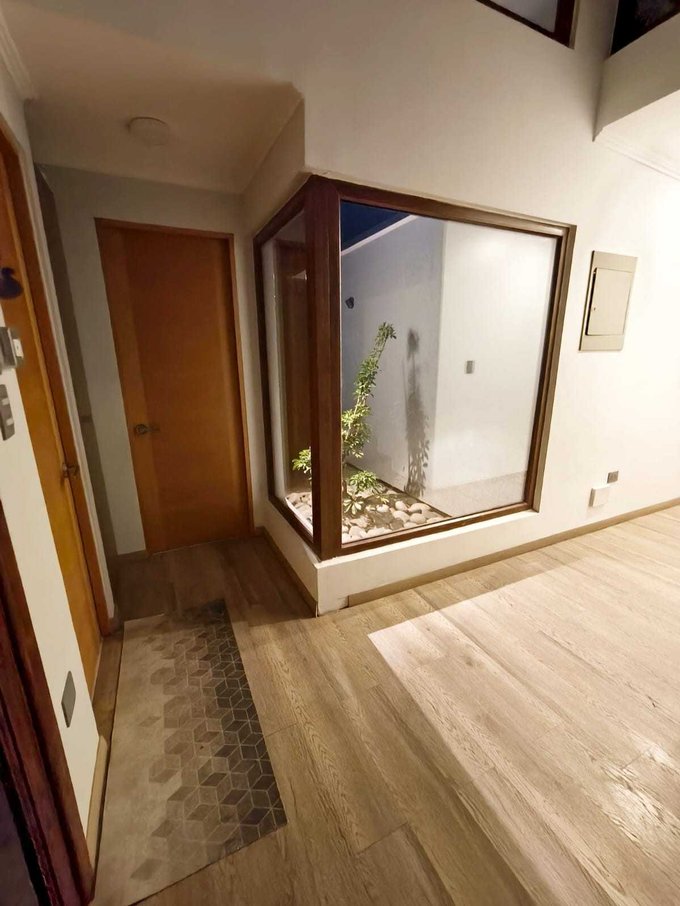 El condominio tiene accesos controlados, cámaras de vigilancia, juegos para niños, áreas verdes, salón de eventos y el Colegio Terraustral Montessori en su interior.