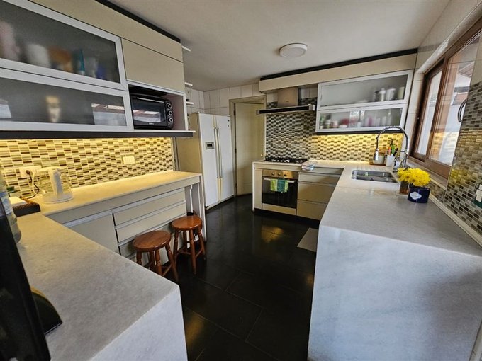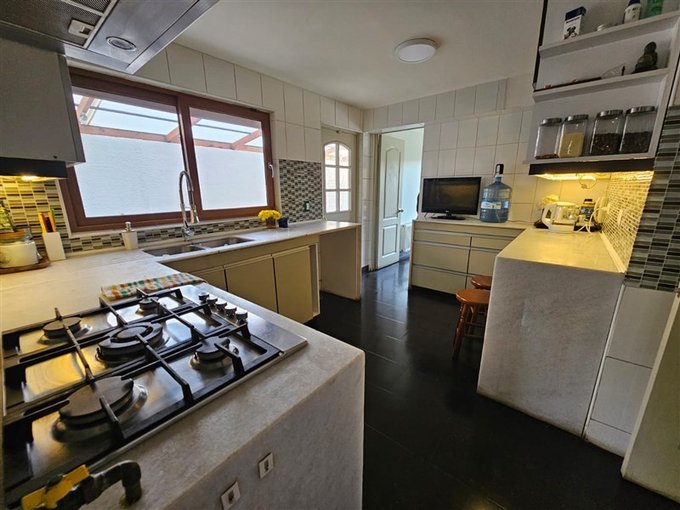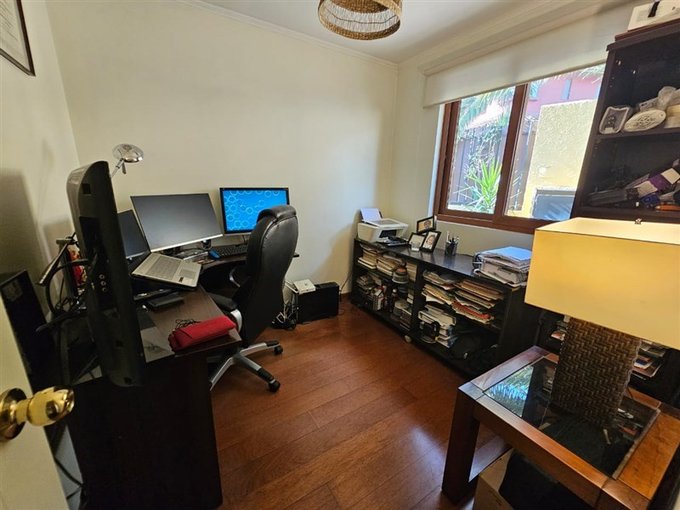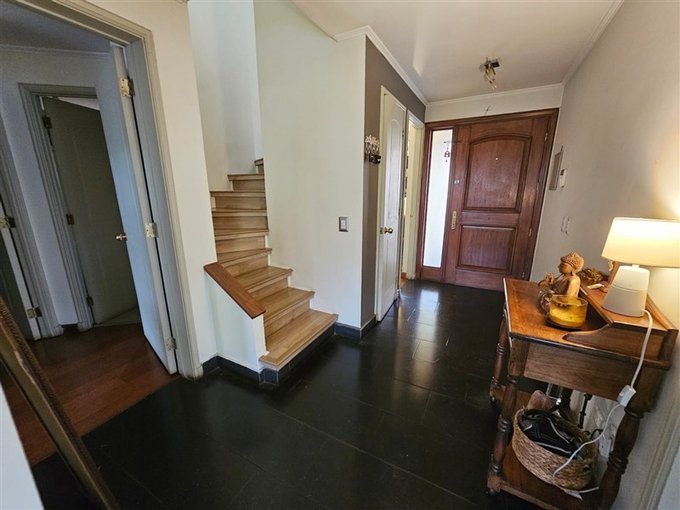 Hall de entrada; baño de visitas; living y comedor con piso de porcelanato; escritorio o dormitorio; cocina remodelada cubierta de cuarzo; pieza de servicio completa; gran logia techada; dormitorio principal en suite con walk in clóset;