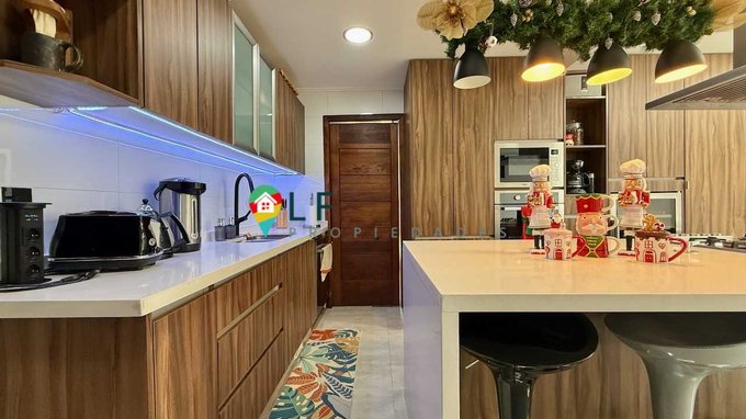 Partimos destacando la funcional cocina equipada en alto standar, muy bien pensada para dar la comodidad en su uso y reunir a la familia, una isla en material noble, estantes ocultos, especieros, horno empotrado en altura, cargador celulares abatibles, doble lavaplatos, entre otras comodidades que te invito a conocer.