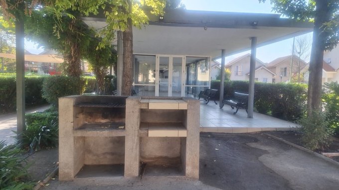 La propiedad cuenta con cocina, comedor y sala de estar , oficina, además de patio, logia techada y quincho techado. También ofrece estacionamiento para visitas, áreas verdes, cancha deportiva multiuso y juegos infantiles. Equipada con conserjería 24/7 lo que garantiza seguridad y acceso controlado. Con gas natural y agua potable.