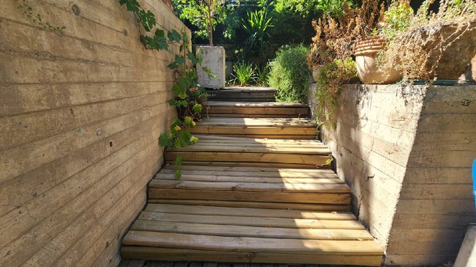 Escaleras que combinan madera y fierro