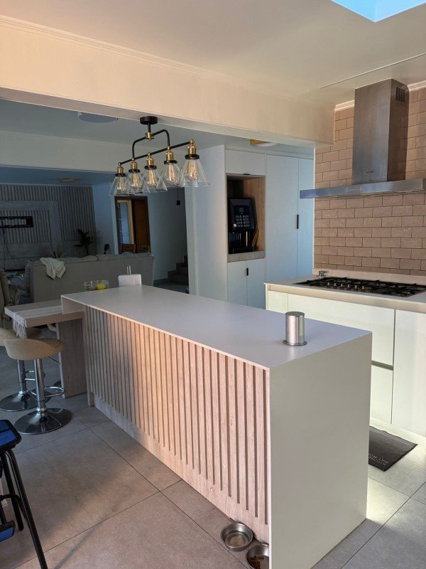 Cocina con cubierta de silestone con amplios muebles modernos.