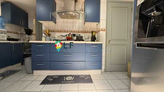 Cocina remodelada tanto en el equipamiento como en muebles, desde ahí se sale una funcional logia con mueble de despensa y entrada a dormitorio de servicio completo