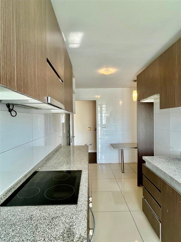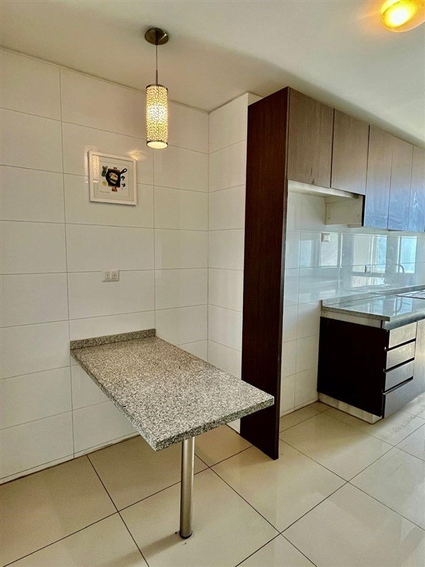 Al ingresar, encontramos un cómodo recibidor, un espacioso living-comedor con salida a un gran balcón. La cocina destaca por su funcionalidad: posee comedor de diario, cubiertas de granito, espacio para refrigerador de gran tamaño y logia independiente, donde se ubica la caldera que abastece el agua caliente y la calefacción por radiadores.