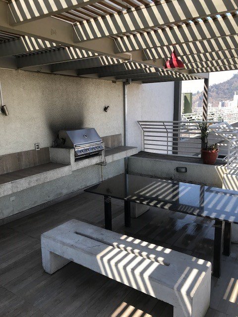 Espacio común en la azotea con quincho y una preciosa vista a la ciudad de Santiago