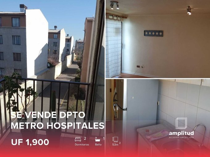 AMPLITUD ASESORÍA INMOBILIARIA VENDE departamento de 2 dormitorios + 1 baño a pasos del Metro Hospitales (L3), Av. Independencia 1499.