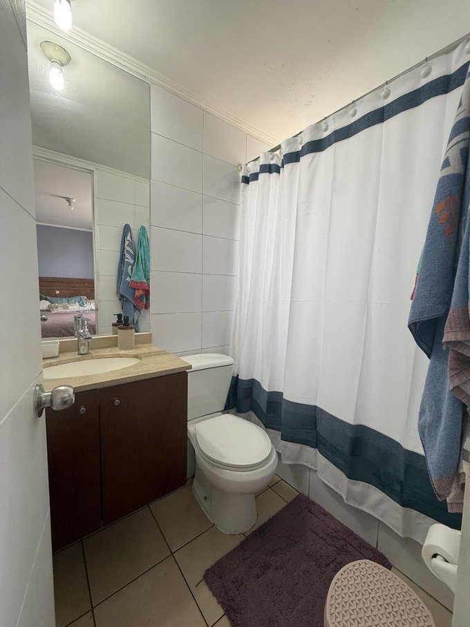 El departamento se ubica en el piso 5, consta de Living comedor con salida a terraza, cocina independiente amoblada, 3 habitaciones con closet (2 de ellas pequeñas, cabe cama de 1 plaza), 2 baños completos en total, incluye 1 estacionamiento.