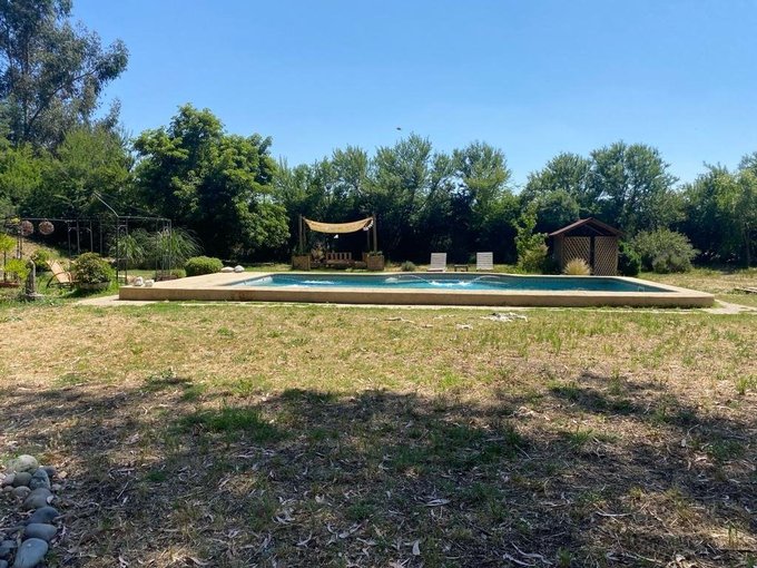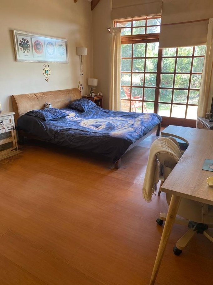Calefacción central, 2 boscas (living y salita de estar), terraza a lo largo de toda la casa, jardín formado, gran piscina y canil, se riega y usa agua de pozo (gratis). Contribuciones $90.000 cada cuota
