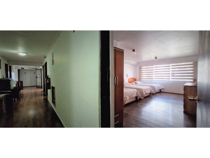El hotel ocupa el segundo y tercer piso de un edificio ubicado en una esquina prominente, con 18 habitaciones completamente habilitadas en el segundo piso y 7 habitaciones singles en el tercero. Además, el tercer piso ofrece la posibilidad de habilitar 6 habitaciones adicionales, actualmente usadas como bodegas. Y para los inversores con visión de futuro, existe la opción de construir un cuarto piso, maximizando aún más el potencial de este inmueble.