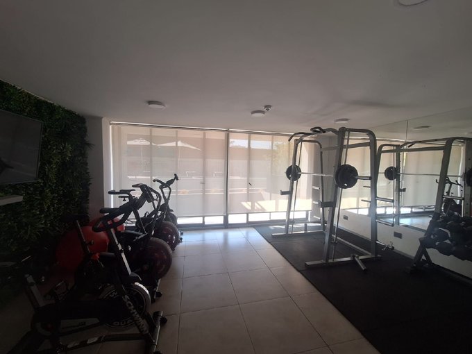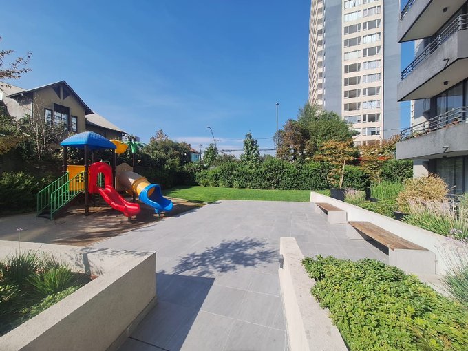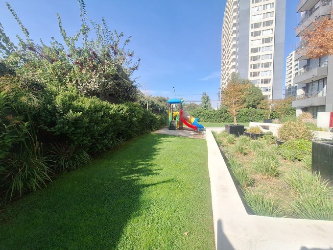 El equipamiento del edificio mantiene accesos controlados Conserjería 24/7,Sala Multiuso , Quincho ,Gimnacio , Piscina , estacionamiento de visitas , bicicletero , juegos infantiles y areas verdes bastante espaciosas.