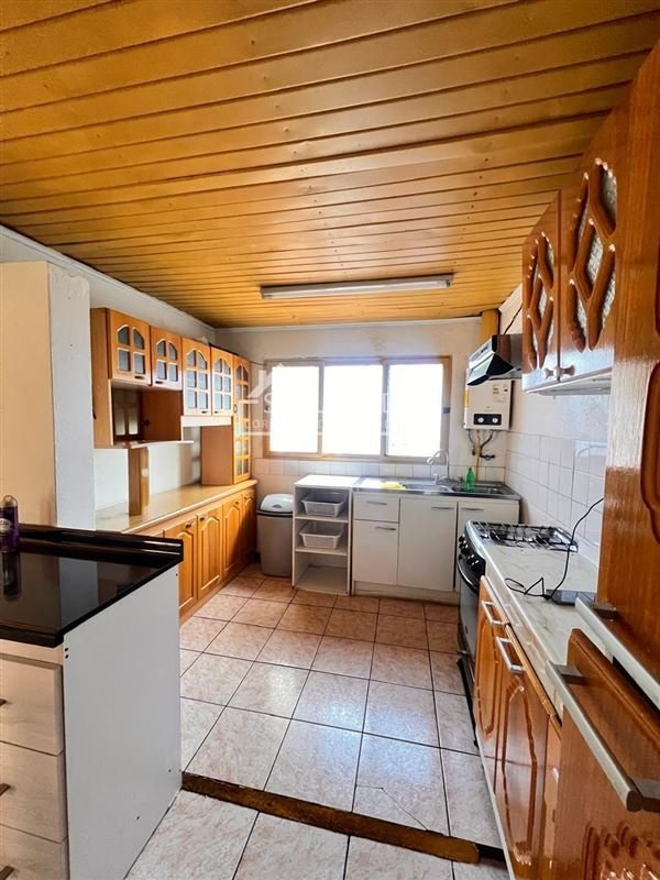 Cocina integrada, equipada con múltiples gabinetes, calefón y conexión a gas natural.