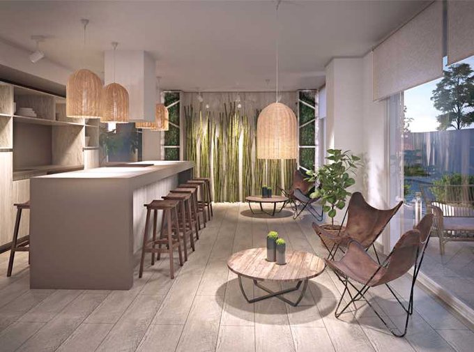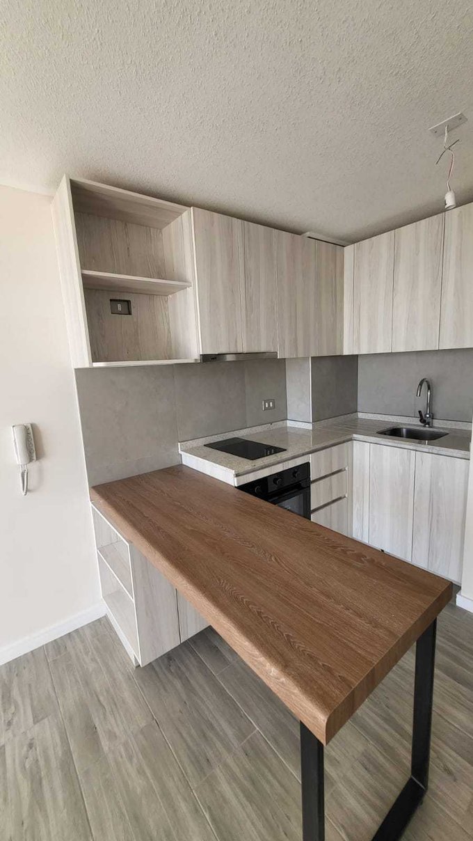 - Cocina americana intregrada al living con cubierta de granito, horno empotrado, encimera vitrocerámica y campana.