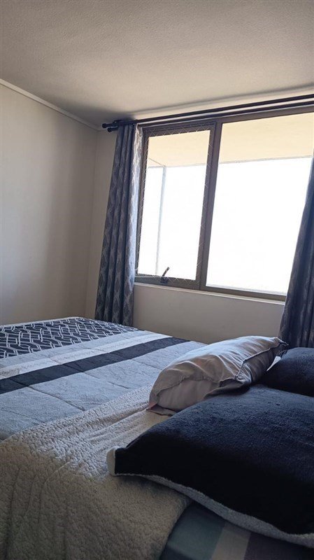 Amplio dormitorio con puerta corredera y ventanal con malla de seguridad.