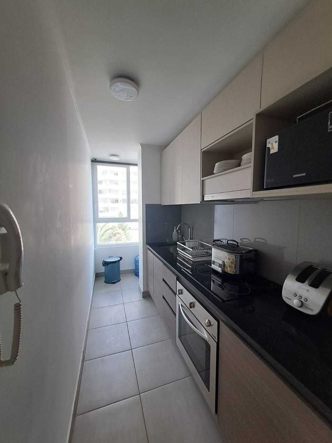 Edificio cuenta con estacionamientos de visitas, quinchos, piscina, áreas verdes, áreas de juego, lavandería, conserjería 24 horas, cámaras de seguridad.