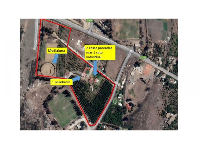 Los 35.000 m2. se componen de 8 parcelas con sus roles individuales, y están rodeados por pandereta de cierro vibrado tipo bulldog., y se componen de ocho terrenos, cada uno con rol propio (nums.5,6,7,8,9,10,11 y 12 del plano de división). Dos de éstos (5 y 11) sufrieron una reducción por expropiación vial de unos metros, para ensanchar el camino y el puente. Existen 2.000 m2. plantados con paltos Hass en producción, la cual es en promedio 35.000 a 40.000 kg./año (aprox. 50 a 60 M$/año de ganancia neta). Los 1.690 paltos cuentan con riego tecnificado por goteo programado, mediante un sistema de programación y control electrónico. En el resto del predio se ubican 3 casas, dos pareadas de 45 m2. cada una y una de 65 m2., de material liviano. Existen además otros árboles frutales, para consumo casero. Dentro del terreno también se cuenta con una pesebrera en muy buen estado, para caballos y una medialuna.