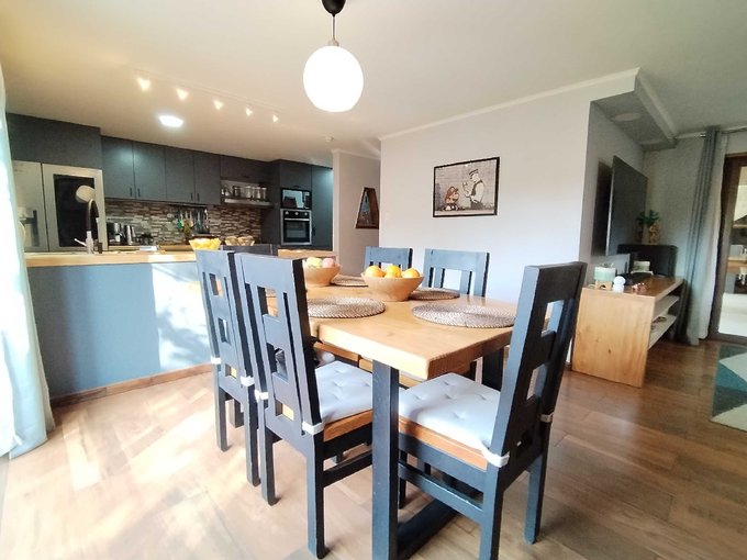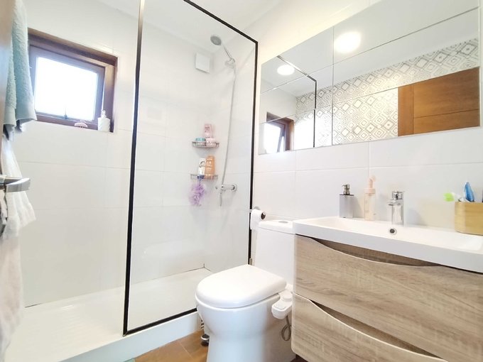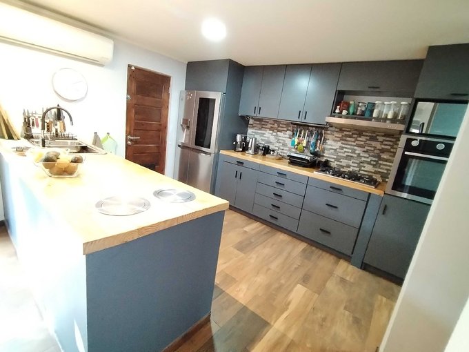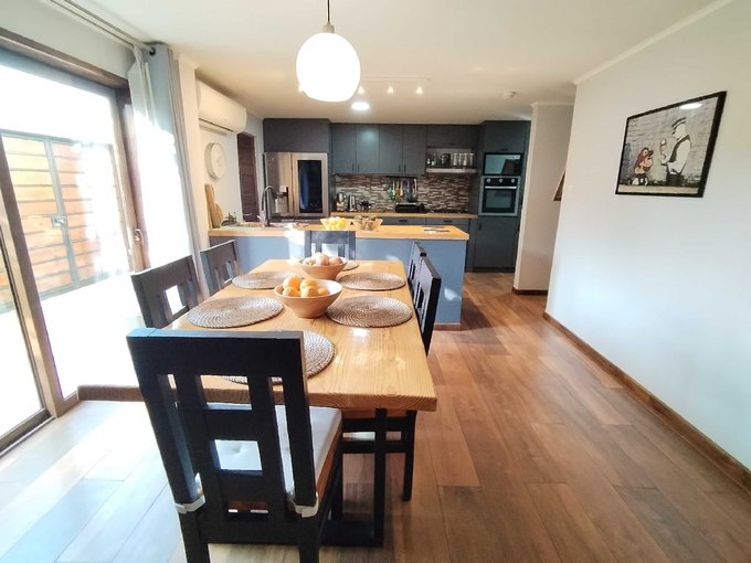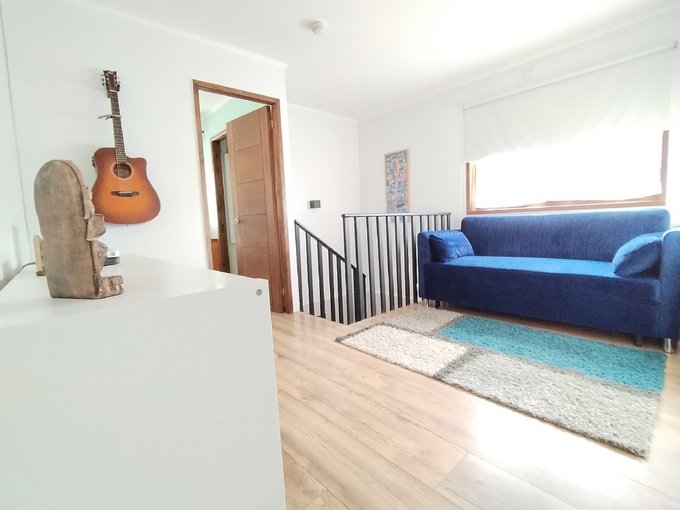 Moderna cocina americana completamente equipada y cubiertas de madera sólida, puertas de madera sólida, sensores de movimiento internos para facilitar la circulación nocturna, todas las ventanas y ventanales de termopanel, baño principal con tina de hidromasaje, sala de estar, hall de entrada, climatizadores en todos los ambientes, terraza techada y cobertizo con excelentes materiales, quincho, riego automático, cámaras de seguridad, cerco eléctrico y otros varios.