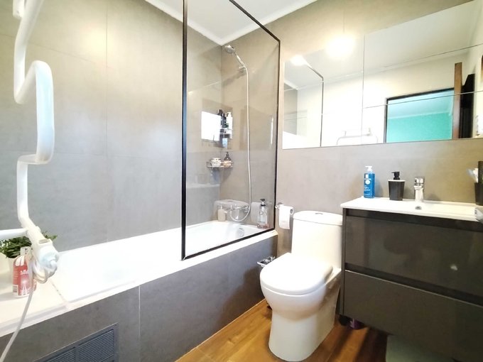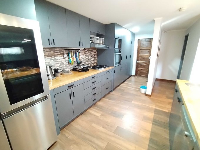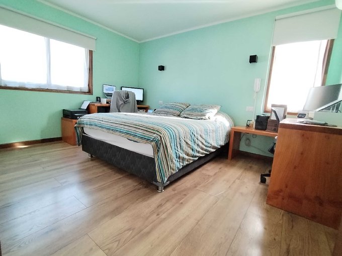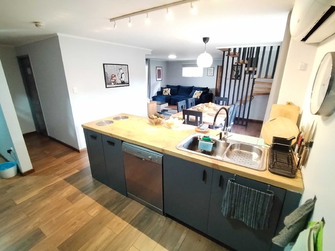 Moderna cocina americana completamente equipada y cubiertas de madera sólida, puertas de madera sólida, sensores de movimiento internos para facilitar la circulación nocturna, todas las ventanas y ventanales de termopanel, baño principal con tina de hidromasaje, sala de estar, hall de entrada, climatizadores en todos los ambientes, terraza techada y cobertizo con excelentes materiales, quincho, riego automático, cámaras de seguridad, cerco eléctrico y otros varios.