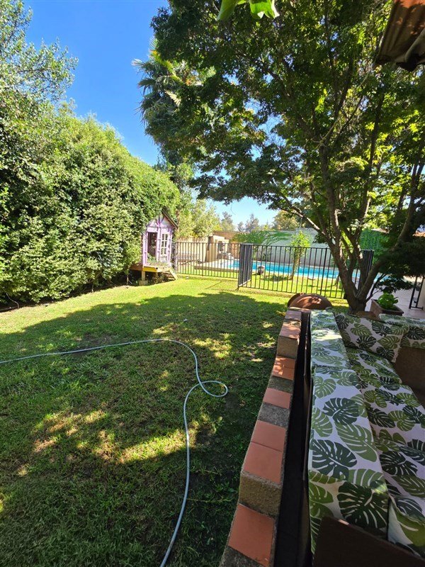 La propiedad consta de antejardín, amplio patio trasero con piscina, terraza y quincho.