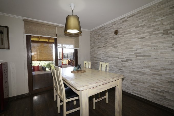 Casa ubicada en un entorno residencial, con una superficie de 133 m² construidos. La propiedad cuenta con cuatro dormitorios y tres baños, distribuidos en dos niveles, lo que permite una organización eficiente de los espacios. El acceso principal se realiza a través de un camino pavimentado, con áreas verdes y estacionamiento exterior.