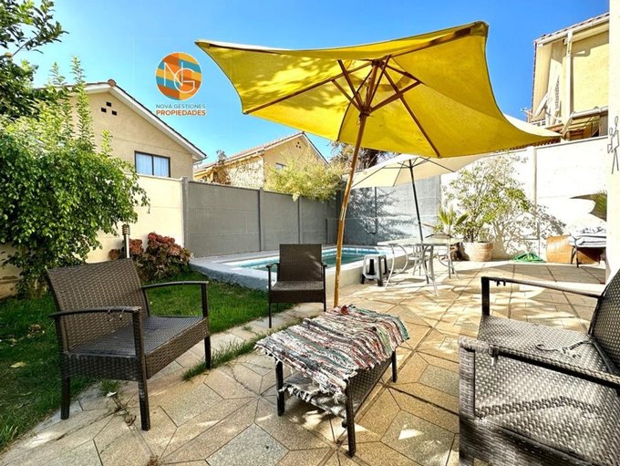 La propiedad destaca por su gran terraza, piscina, antejardín y estacionamiento para 2 vehículos.
