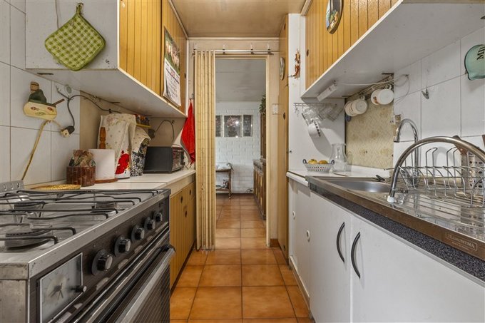 La casa original cuenta con living-comedor, cocina funcional, baño, dormitorio secundario y dormitorio principal con salida al patio.