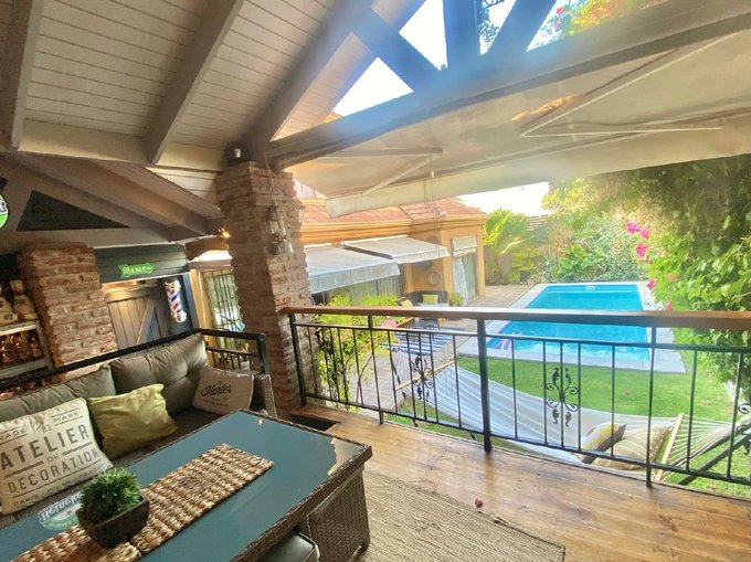 En el segundo piso se encuentran dos dormitorios adicionales, perfectos para niños o un espacio de oficina, junto a una sala de estar ideal para juegos, estudio o cine en casa. El exterior es un verdadero privilegio: un gran patio con pasto, piscina de 8 3,5 metros con bomba, riego automático en cuatro zonas, y un quincho elevado completamente equipado con bar y bodega iluminada, todo diseñado para disfrutar al máximo en familia y con amigos. La seguridad también es una prioridad: cuenta con protecciones en el primer piso, portón y puerta automáticos con citófono y cámara, reja sólida, sistema de alarma y cortavisión.