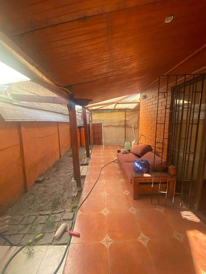Patio trasero con quincho y una pequeña bodega.