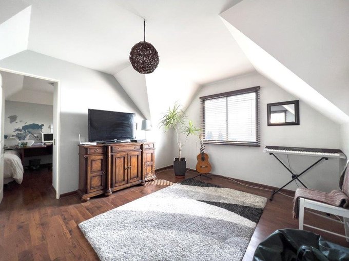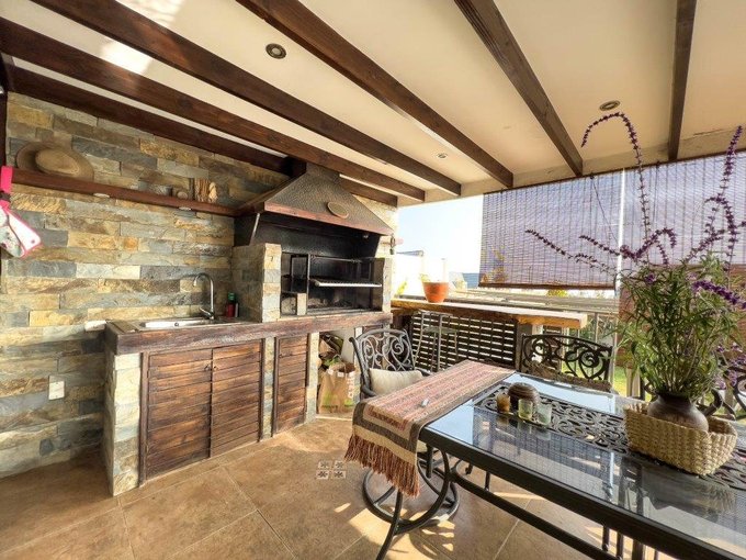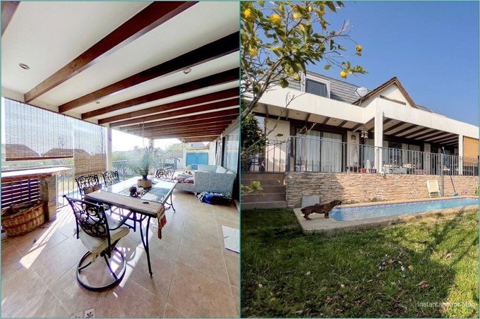 En la primera planta se encuentra el living conectado al comedor, una cocina equipada con comedor de diario, baño de visitas y logia. Una amplia terraza con quincho da acceso a un jardín consolidado con riego automático y piscina de 63 metros.