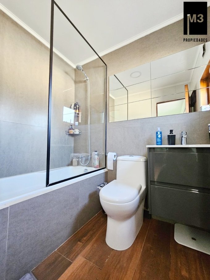 - Dos dormitorios adicionales que comparten baño moderno con shower door.