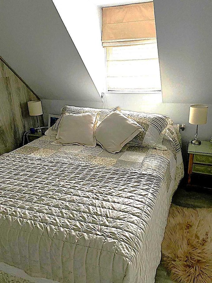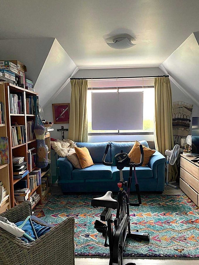 Segundo piso: 3 dormitorios con amplio espacio para cama de 2 plazas, los tres con persianas metálicas, un baño completo y sala de estar con hermosa vista.