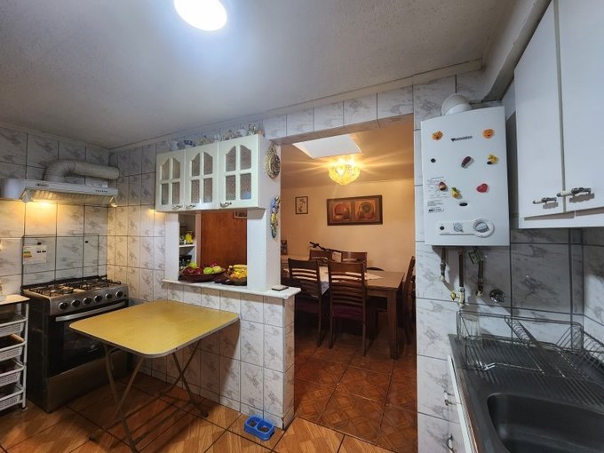 1er Planta ingreso a amplio living separado de cocina la que es tradicional amoblada y equipada con campana, sala comedor independiente, dormitorio principal en suite con baño completo de luz natural y calefont independiente y con acceso a zona de quincho.