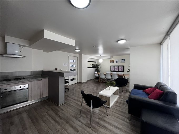 Espacioso e iluminado living comedor, con aire acondicionado , ventanales , una terraza y piso Flotante.