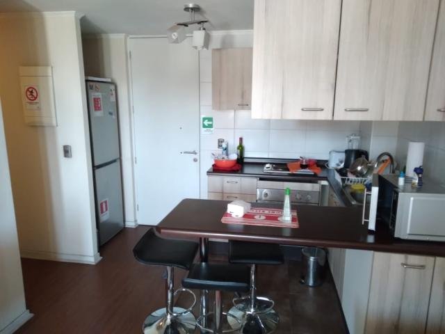 PROCASA VENDE: 65363 Departamento 46 mtrs2 Construidos. 2 dormitorios, 1 baño, 1 Estacionamiento. Moderno Departamento, Espacios integrado en estar comedor, moderna cocina amoblada y equipada, 2 Dormitorios, closet, 1 baño completo Este Moderno departamento, con muy poco uso, muy bien mantenido, excelentes terminaciones. Cercano a comercios, a Mall, Bancos, Universidades, Clínicas, Comercio general. Locomoción publica y Estaciones de metro. Gastos comunes $90.000, Contribuciones $45.000