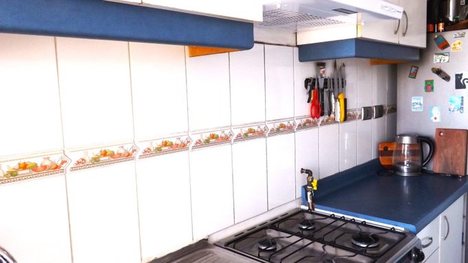 Cocina tradicional, amplia y con logia, cuenta con campana, muebles a muro y base.