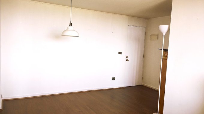 Living comedor, piso flotante impecable, con ventanal a la terraza, muy luminoso.
