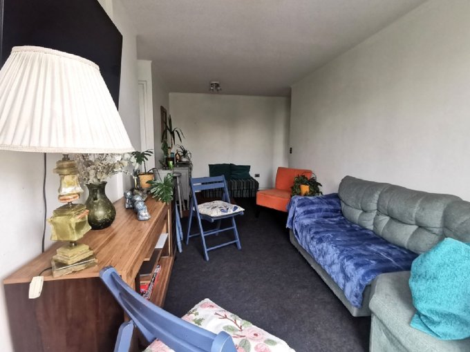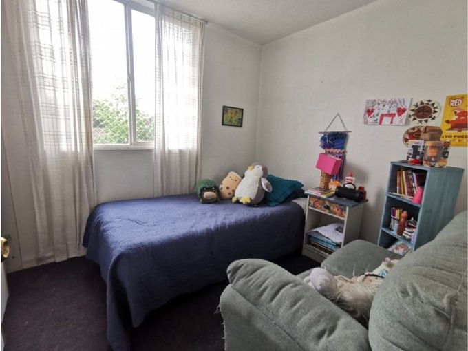 Edificio de 4 pisos tranquilo con área verdes y juegos para niños. Conserjería 24 hrs.