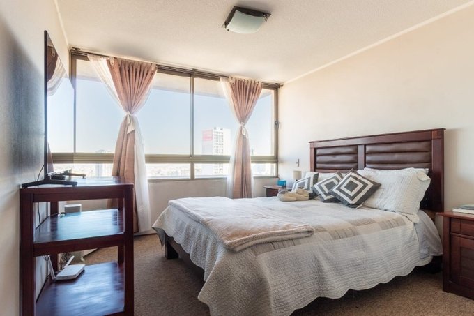Espacioso y excelentemente distribudio Dpto con VISTA SUR PONIENTE, Compuesto por amplios 2 dormitorios, uno de ellos con baño en suite, segundo dormitorio con closet, 2do baño completo, amplio living comedor y cómoda terraza, cocina tradicional cerrada, amoblada y equipada, con conexión de lavadora.