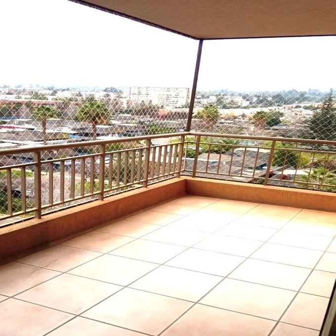 Amplia terraza con malla de protección con vista a la Cordillera