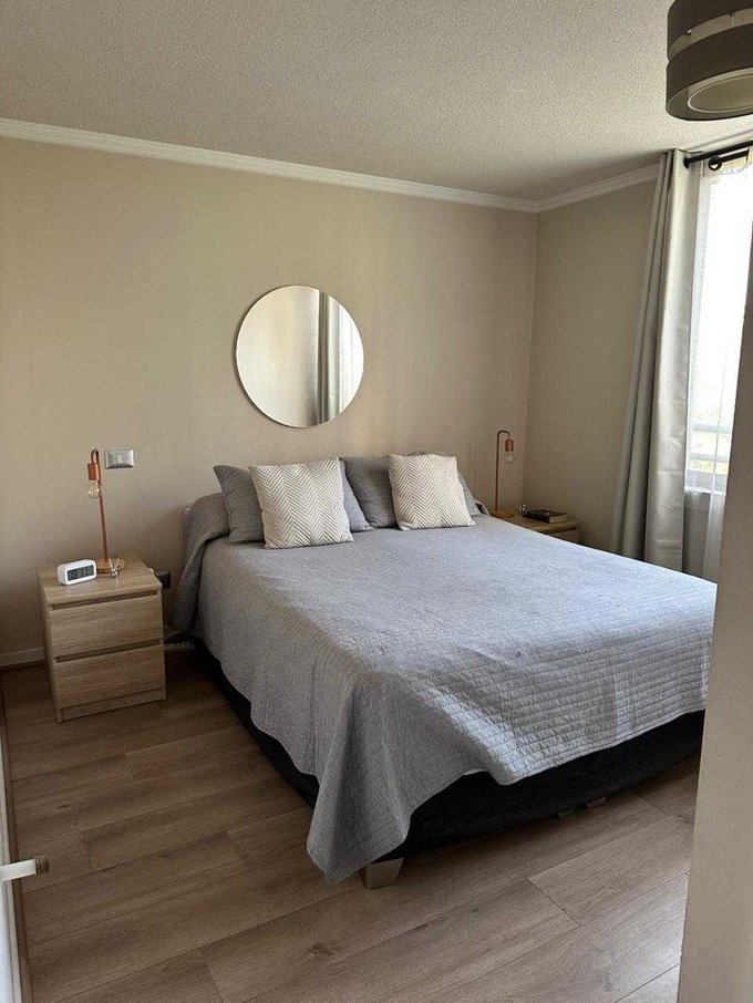 -Dormitorio principal con capacidad para cama 2 plazas, veladores. Cuenta con clóset.