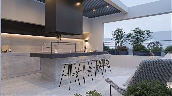 * Cocina con vitrocerámica, horno eléctrico y campana retráctil.
