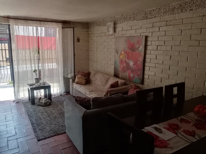 Se vende casa en tradicional villa Los Pensamientos, comuna de La Granja, 168 mts 2 totales y 56 construidos; Cuenta con 3 dormitorios, un baño, cocina tradicional y amplio living comedor. Piso baldosín cerámico. Antejardín. Terraza con cobertizo; amplio patio trasero; estacionamiento hasta para 3 vehiculos . Gran espacio exterior para compartir en familia. La propiedad se encuentra ubicada a 7 minutos del metro la Granja, salida a acceso Vespucio Sur, cercana a Mall Plaza Vespucio, Inacap, cesfam, colegios, supermercado Santa Isabel al frente de la casa, stripcenter con variado comercio, veterinaria, ferreterías, colectivos, etc.