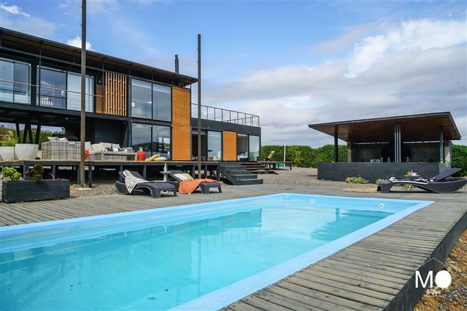 La propiedad destaca por su arquitectura en distintos niveles, diseñada inteligentemente para aprovechar al máximo la vista al mar desde prácticamente todos sus espacios, además de amplias terrazas y una gran piscina con vista directa al océano.