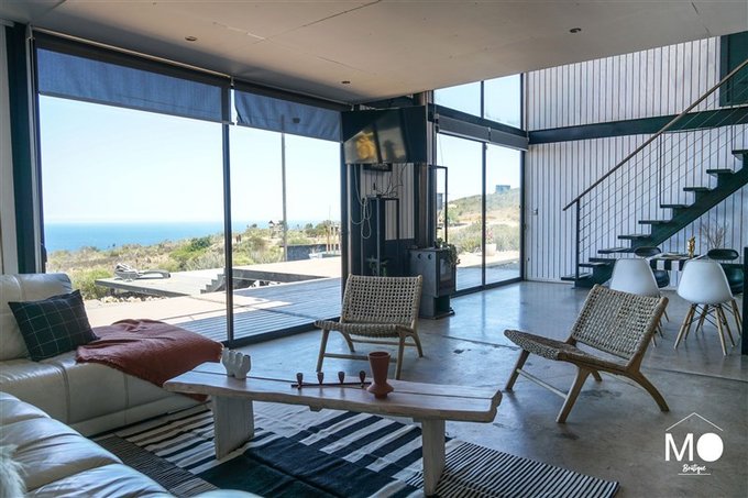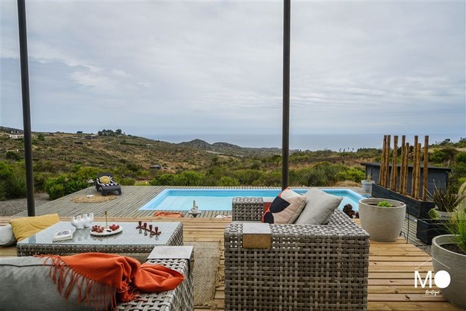 Espectacular casa en venta ubicada en el exclusivo Condominio Las Rocas de Los Molles, a aproximadamente 2 horas de Santiago, con una vista privilegiada e ininterrumpida al océano.