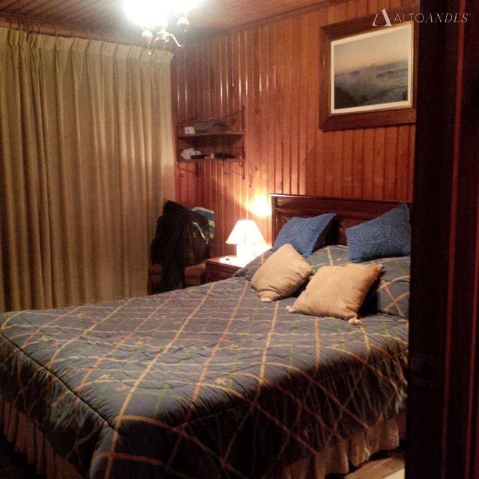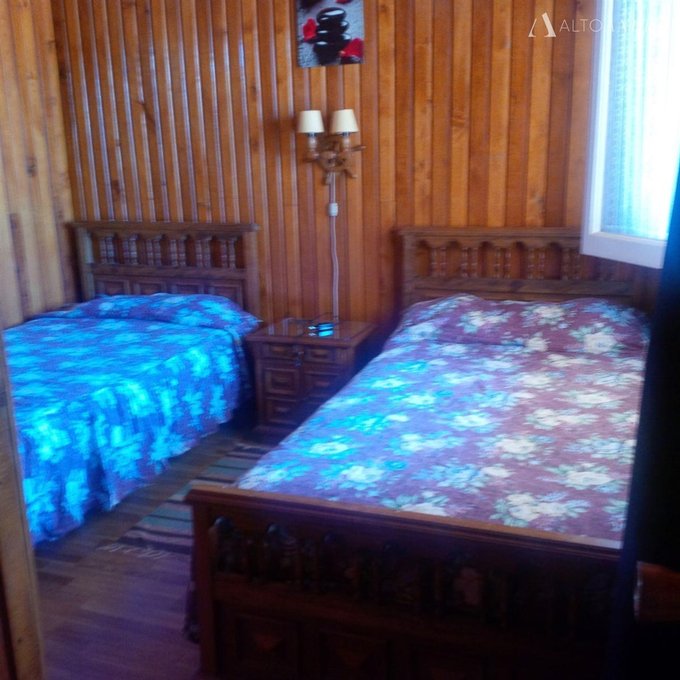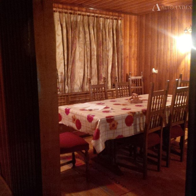 Tiene 3 dormitorios, uno de ellos en suite y 3 baños, con living con chimenea y un amplio comedor. Muros de madera.