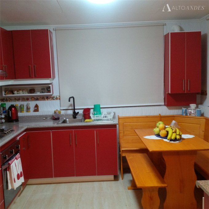Cocina con muros de cerámica. Piso flotante.